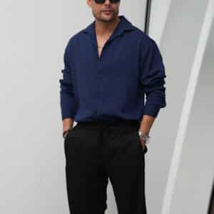 - پیراهن نیم دکمه یا سه دکمه: پیراهن طرح دار مردانه از یقه تا روی سینه حدود سه دکمه دارد و در ادامه جلو بسته است. این نوع لباس بیشتر حالت اسپرت دارد و برای پوشیدن زیر کت و شلوار مناسب نیست.