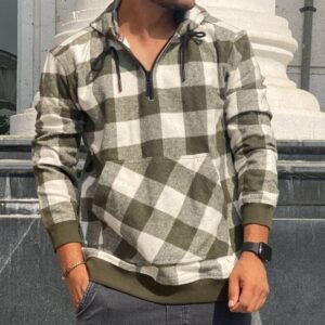 - هودی نیم زیپ: این نوع لباس از قسمت یقه تا روی سینه زیپ دارد. این حالت هم باعث جذابتر شدن لباس میشود و هم پوشیدن آن را راحتتر میکند.