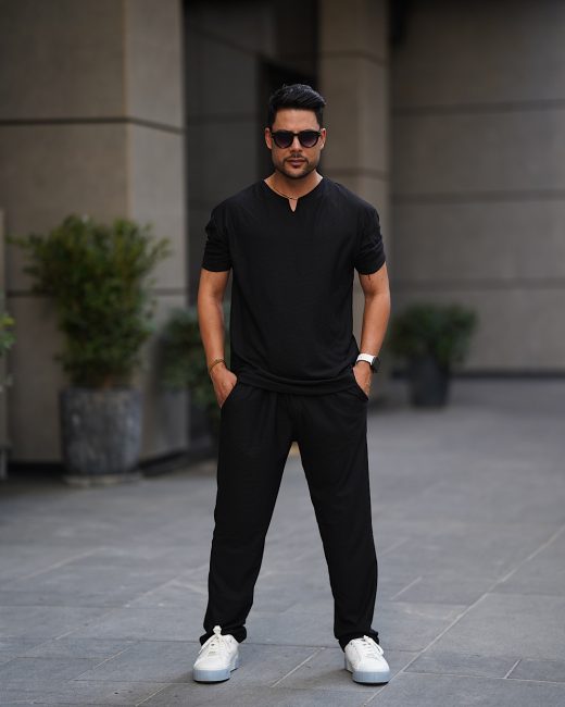 ست مردانه تیشرت نیم زیپ و شلوار