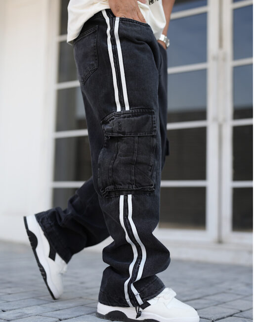 شلوار کارگو جین بغل نوار