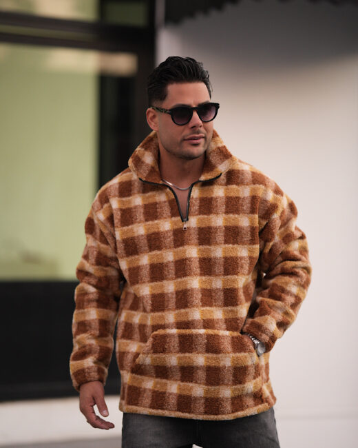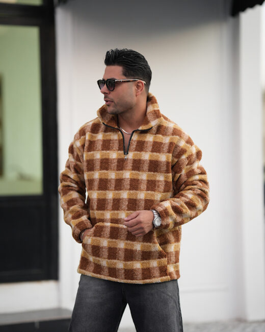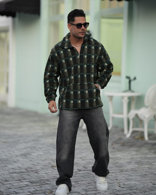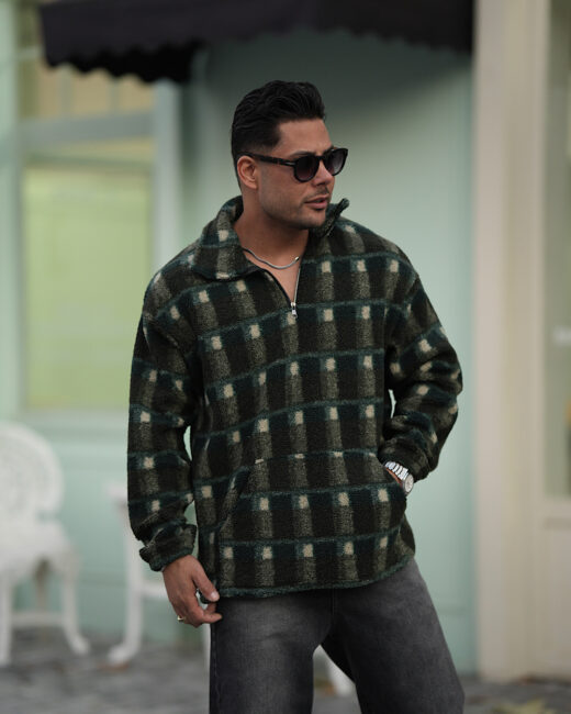 سایزبندی هودی مردانه نیم زیپ چهارخانه