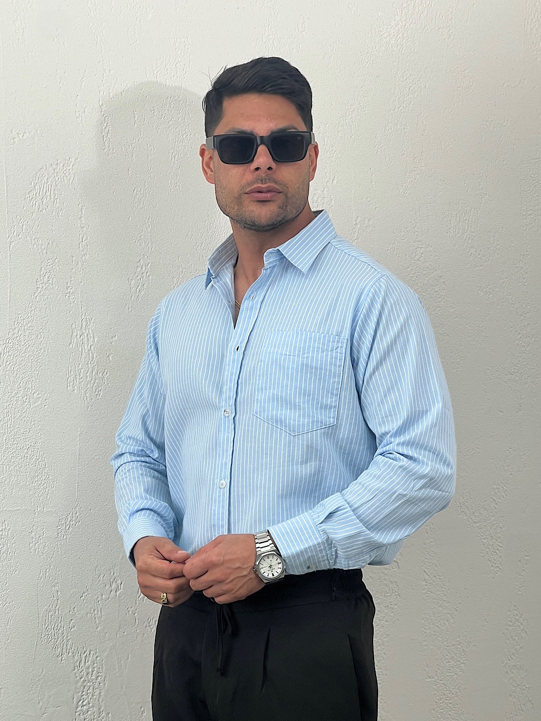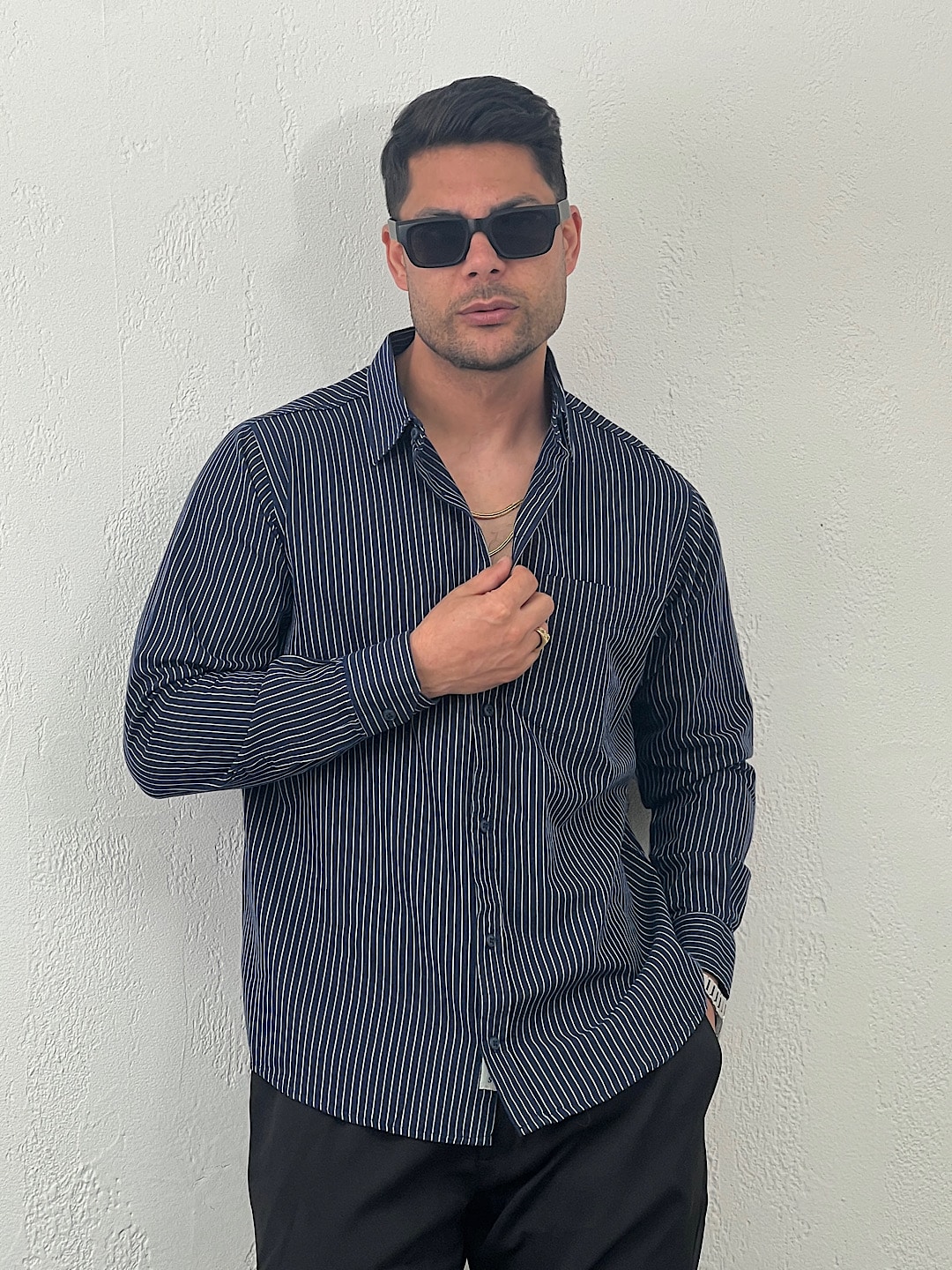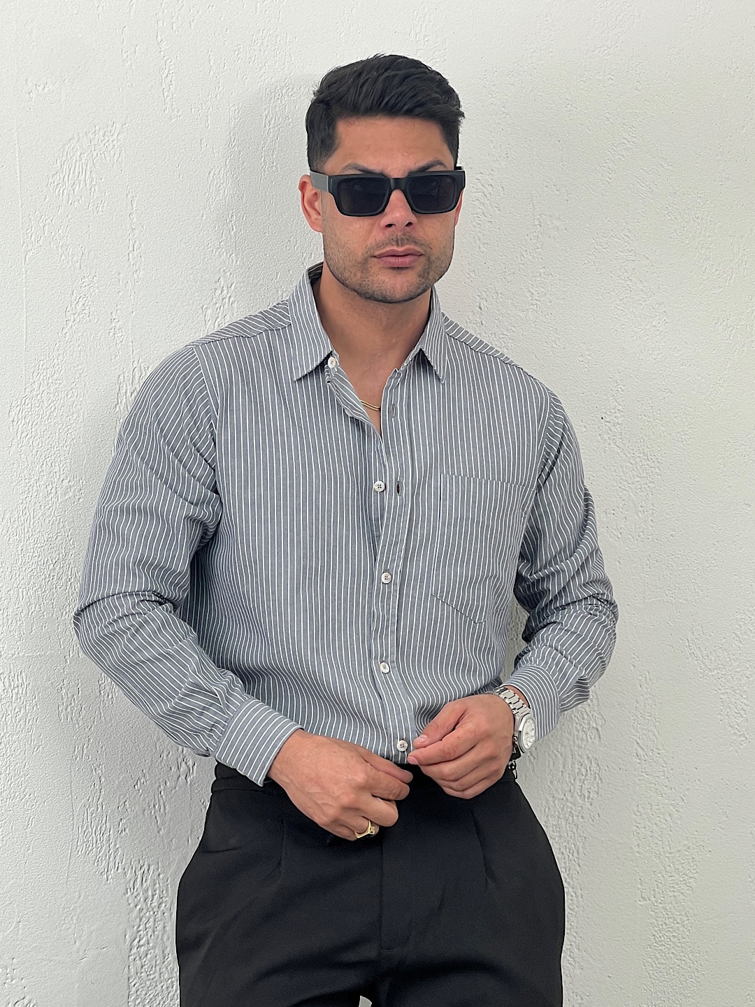 پیراهن مردانه راه راه پیله دار