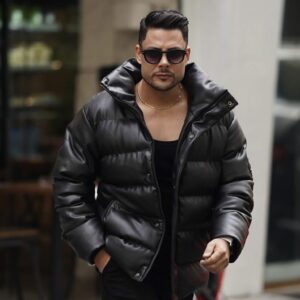 کاپشن چرم یقه دار