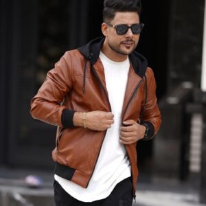 کاپشن چرم کلاه دورس